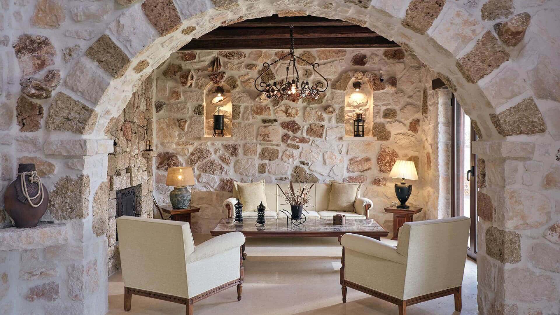 Palazzo Di P is a premier luxury property, unique styled, with breathtaking architecture, real stone arches, high ceilings, marble flooring from all over the world and a combination of period and contemporary furniture. Property architecture of the property was inspired by local history and tradition with similarities to the Tuscan – style architecture which blends with modern touches. A key feature of Palazzo architecture is its ability to seamlessly embed the nature of the island surroundings. Zante Island surroundings are well known for its agricultural elements and its romantic landscapes. Palazzo was entirely constructed of local stone and other building materials such as limestone, travertine, sandstone with marble carvings from India, Turkey, Egypt and other parts of the World. As far as it concerns Palazzo outdoors, it features outdoor living spaces, carefully designed to match with the characteristics of the main building.